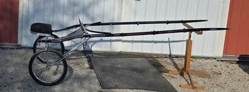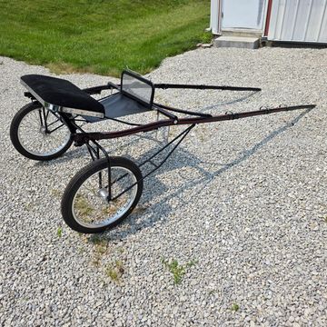 96 inch shafts, walnut with black stripe, wood wheels, patent boot, chrome rail dash, flat cushion seat.