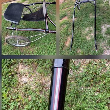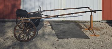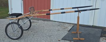 Black with red stripe, refinished 96 inch shafts, wood wheels.