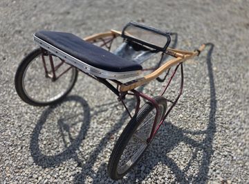 Black with red stripe. Wood wheels.